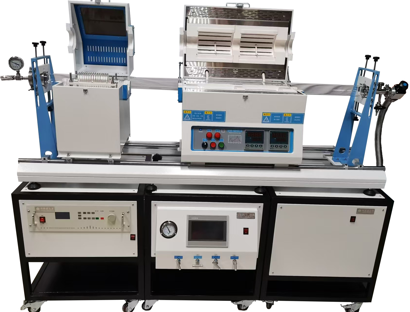 ?爐管:高純石英管φ100*1000mm,鍍鉻鋼制成的雙滑軌,手動(dòng)滑軌長度1400mm。